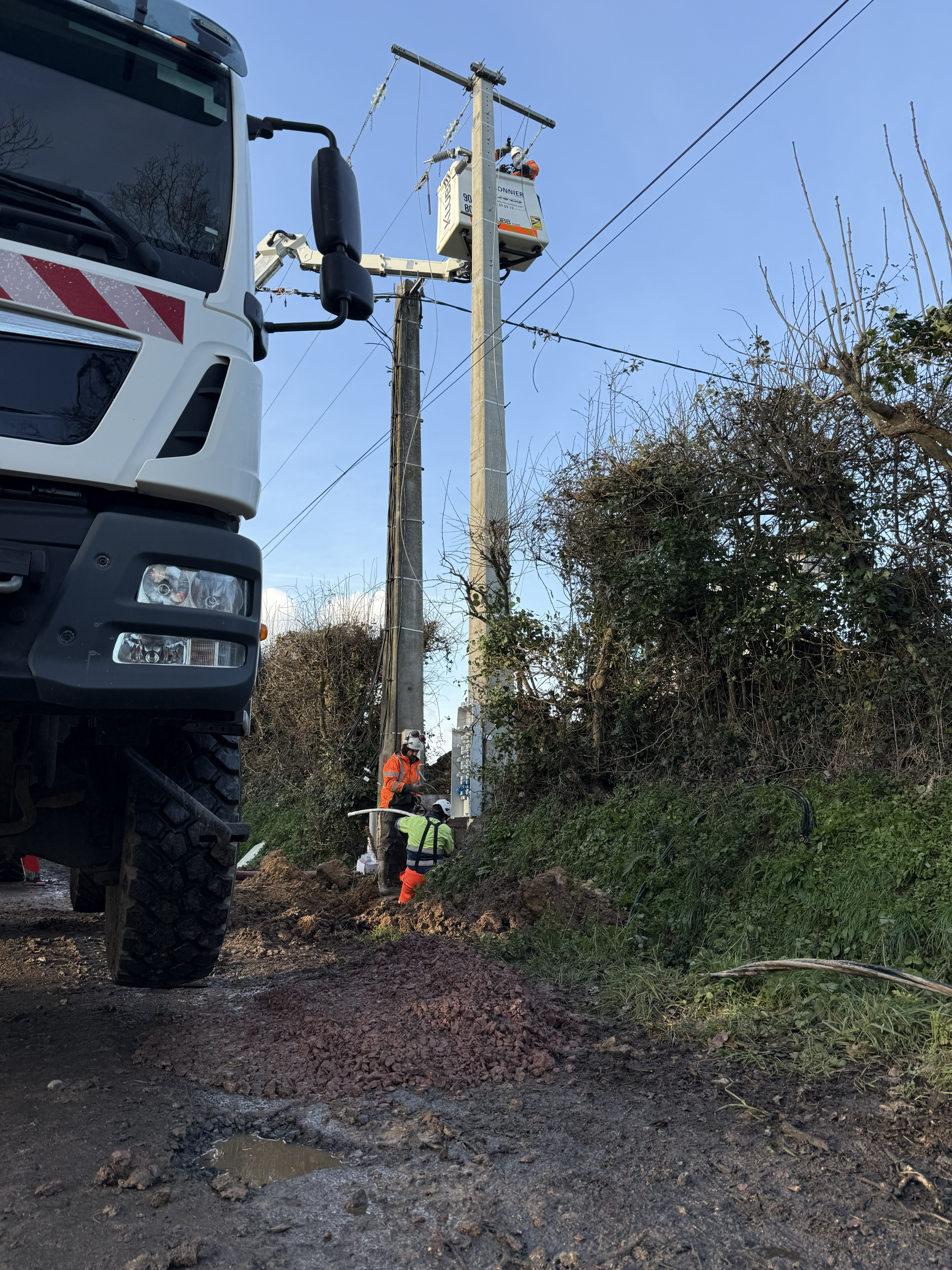 Nos équipes réalisent des travaux de création, d’extension, de renforcement et de sécurisation des lignes aériennes, notamment dans des contextes contraints ou exposés aux aléas climatiques. Les interventions peuvent être menées sous tension par du personnel habilité, garantissant ainsi la continuité du service pour les usagers.
